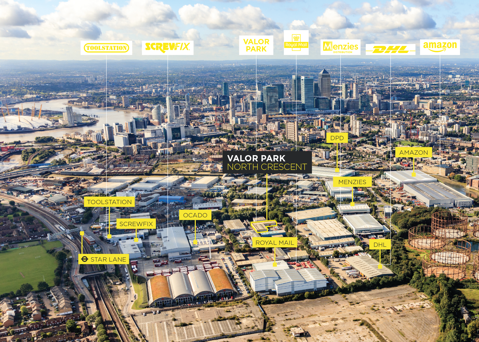 The property is situated on the eastern side of North Crescent, close to its intersection with Cody Road. Road communications are excellent with the A12 to the west and the A13 to the south of the estate, both of which link with the A406 and thereafter onto the M11 (J4) and the M25 (J28/30/31). Canary Wharf can also be reached by car in just 11 minutes.
